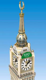 The Mecca Clock Royal Tower, a 577-metre tower overlooking the holy city. The Mecca Clock Royal Tower is also going to house an 858-room hotel. The complex, which will overlook the Grand Mosque that Muslims face for daily prayers. The Makkah Clock tower will be the biggest clock tower in the world as well as being the second tallest building. This article also has some great picture and videos of the whole development and the view of the Haram from the top of the biggest clock tower in the world. The tower is made up of 662 metres of concrete structure and a 155-metre crescent-topped metal spire.